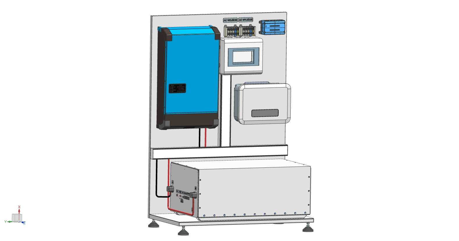 Kluczowym elementem zestawu jest urządzenie Victron MultiPlus-II, które zarządza przepływem energii, zapewniając jej optymalne wykorzystanie, a system jest skonfigurowany i gotowy do pracy. Bardzo prosty w montażu, ponieważ jest tylko jedno wejście, do którego podłączamy sieć, zaraz po układzie pomiarowym (liczniku energii). Wyjście podłączamy bezpośrednio na całą rozdzielnię instalacji budynku.