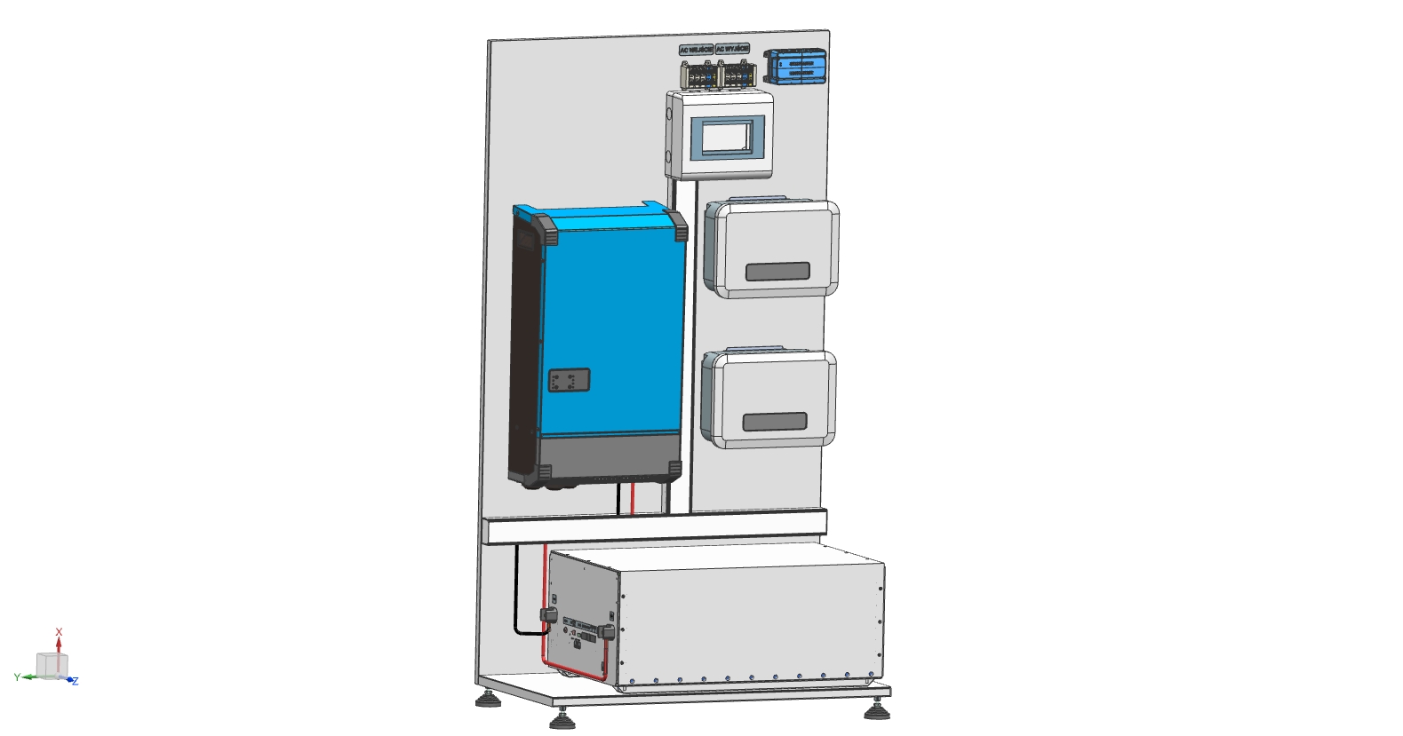 Kluczowym elementem zestawu jest urządzenie Victron MultiPlus-II, które zarządza przepływem energii, zapewniając jej optymalne wykorzystanie, a system jest skonfigurowany i gotowy do pracy. Bardzo prosty w montażu, ponieważ jest tylko jedno wejście, do którego podłączamy sieć, zaraz po układzie pomiarowym (liczniku energii). Wyjście podłączamy bezpośrednio na całą rozdzielnię instalacji budynku.